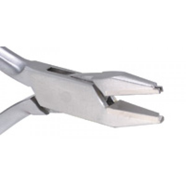 Specifically designed for placement of the crimpable archwire ball hooks and power hooks. The tips are tool steel inserted. Machined to fit all popular brand crimpable hooks. The instrument secures the hook for positioning and placement then by slightly squeezing the plier it puts a dimple at the base of the hook to secure it to the archwire.