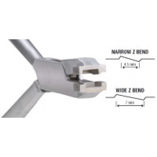 Designed to put a Z Bend Root Tip Back Bend (with one easy squeeze) in the Archwire without removing the Archwire. Comes in straignt, Double Sided, Narrow and Wide)