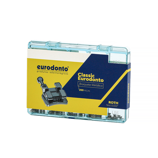 Bráquete Metálico Monobloco Roth 0,022” c/ Gancho Nos Caninos e Pré-Molares c/ 10 Casos – EURODONTO